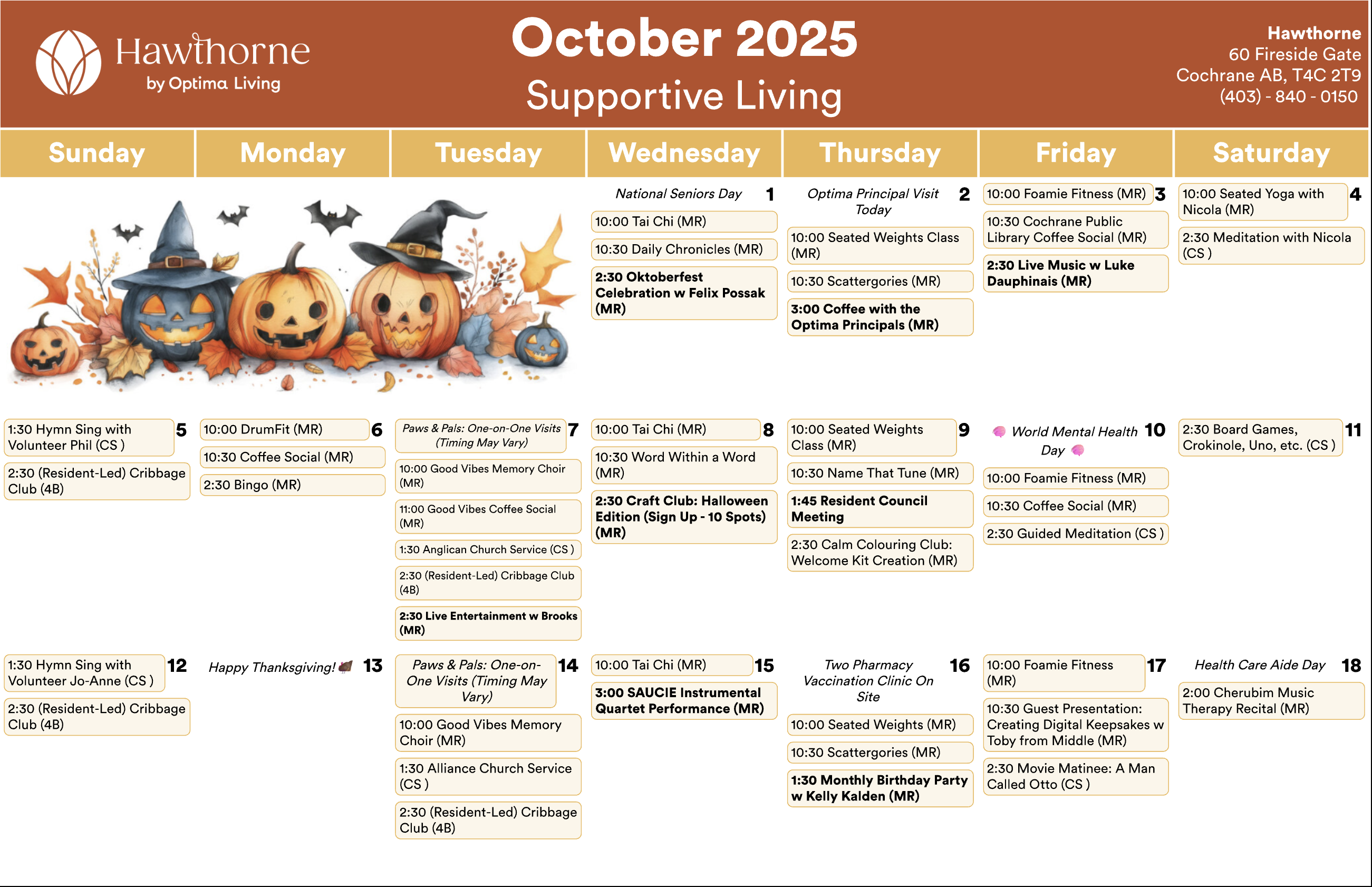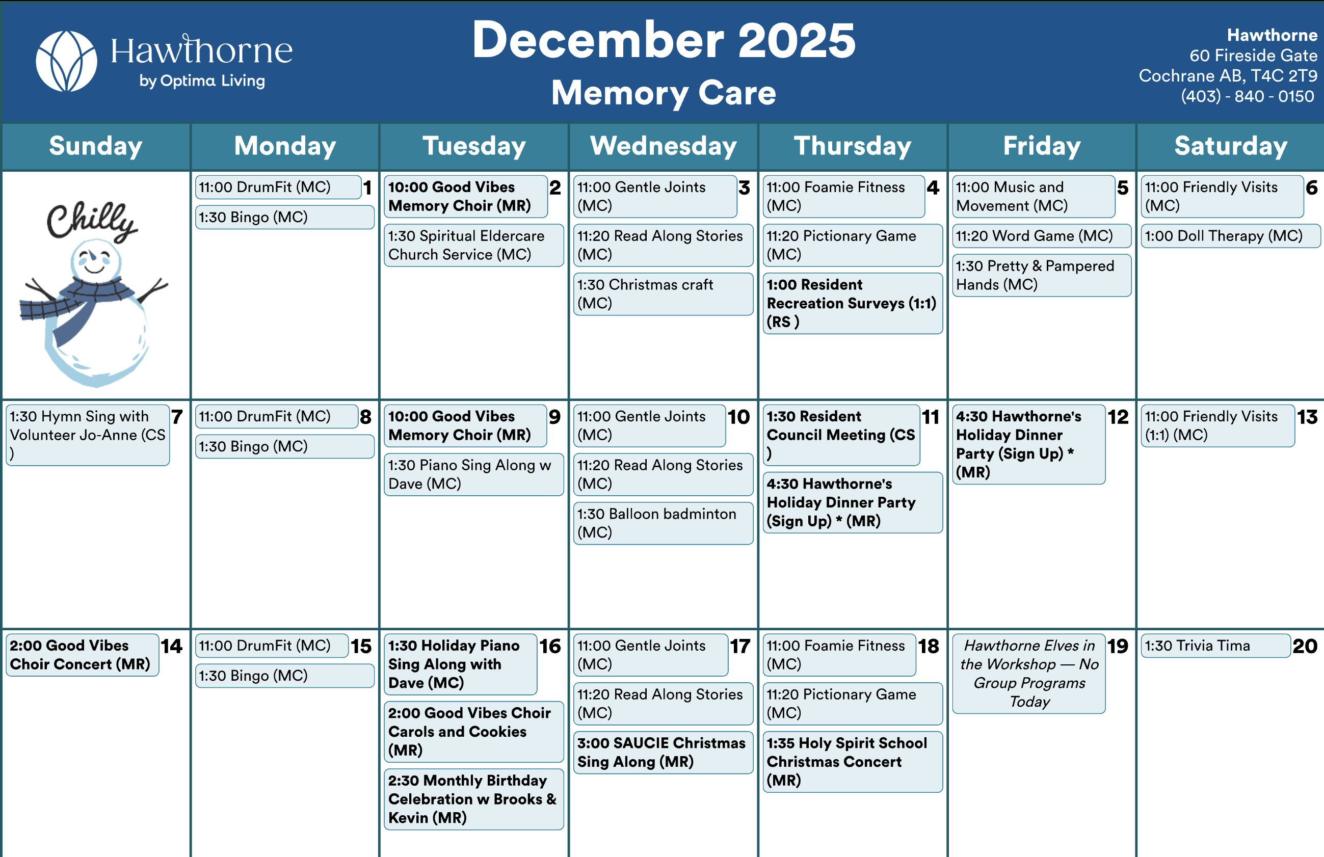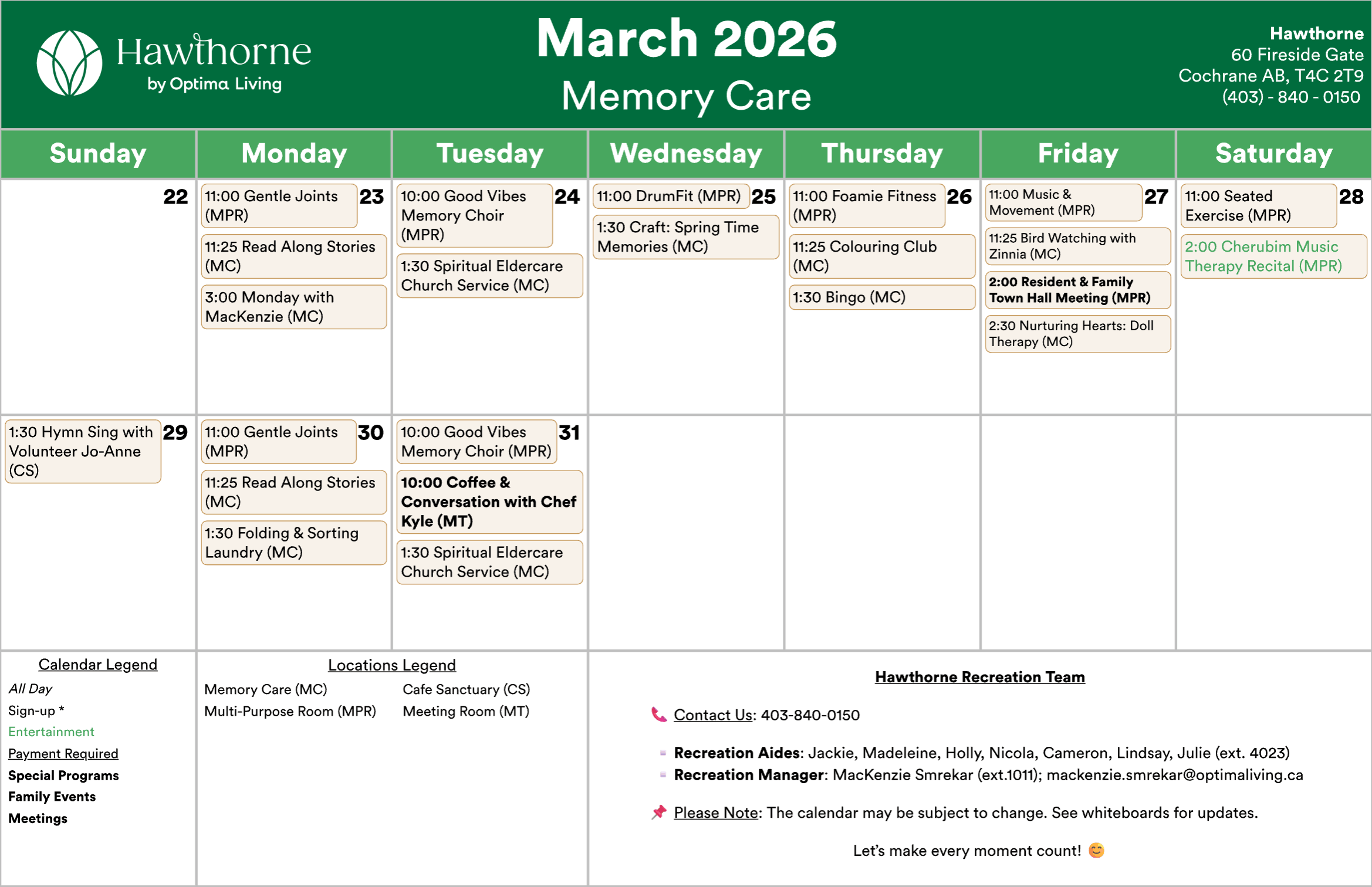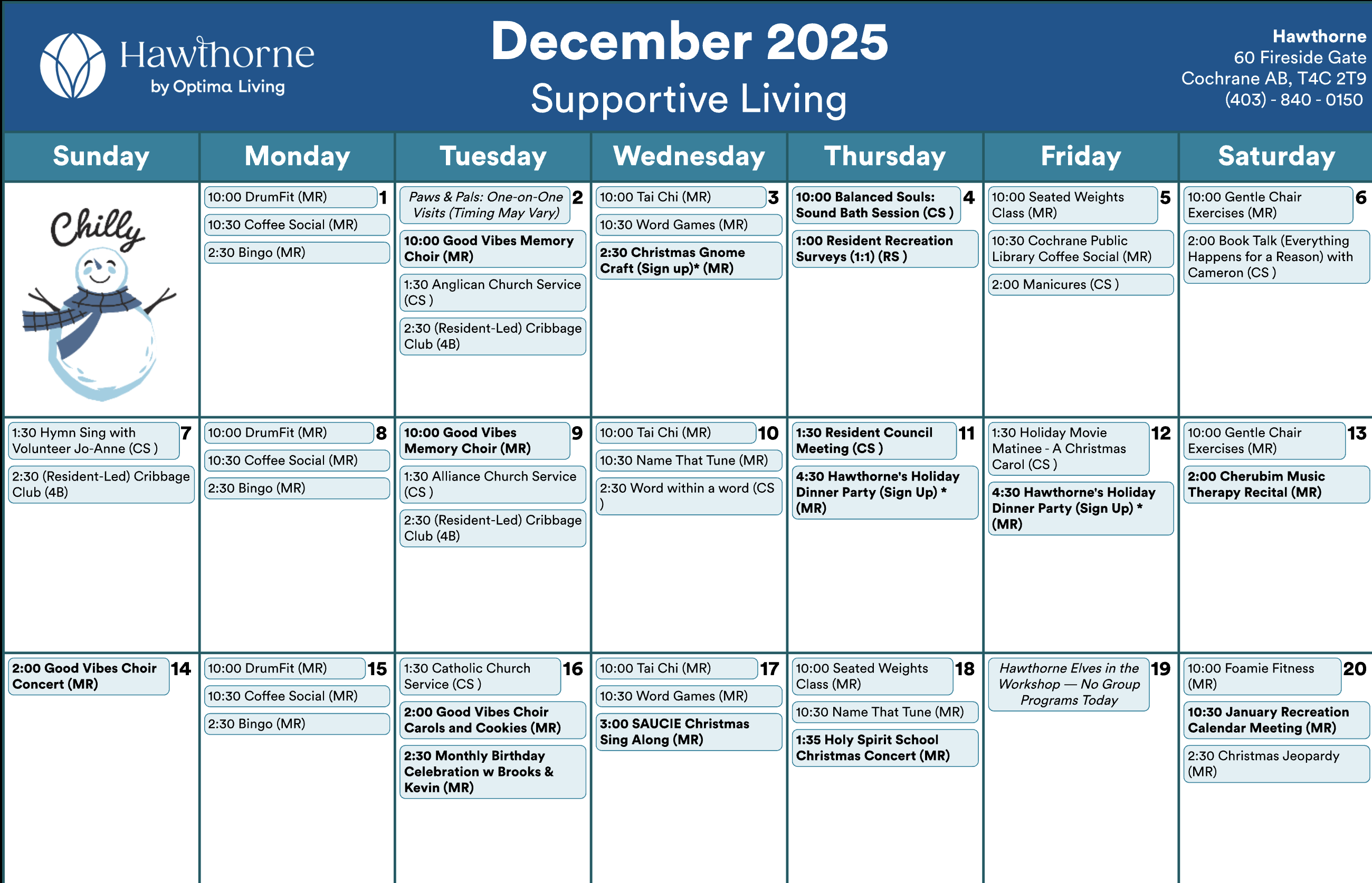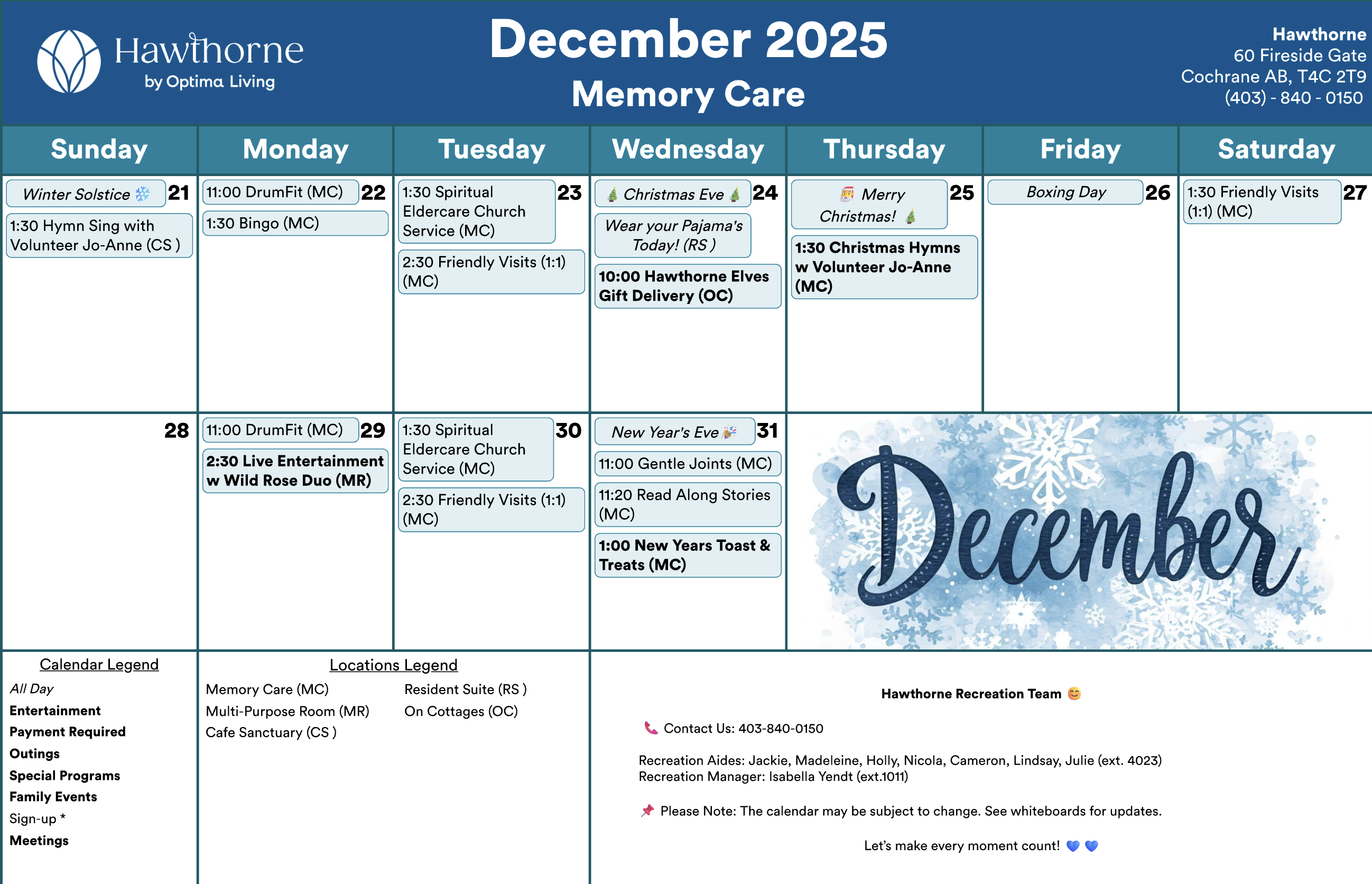 Any updates or changes will be posted on whiteboards in the residence! Calendar is subject to change.