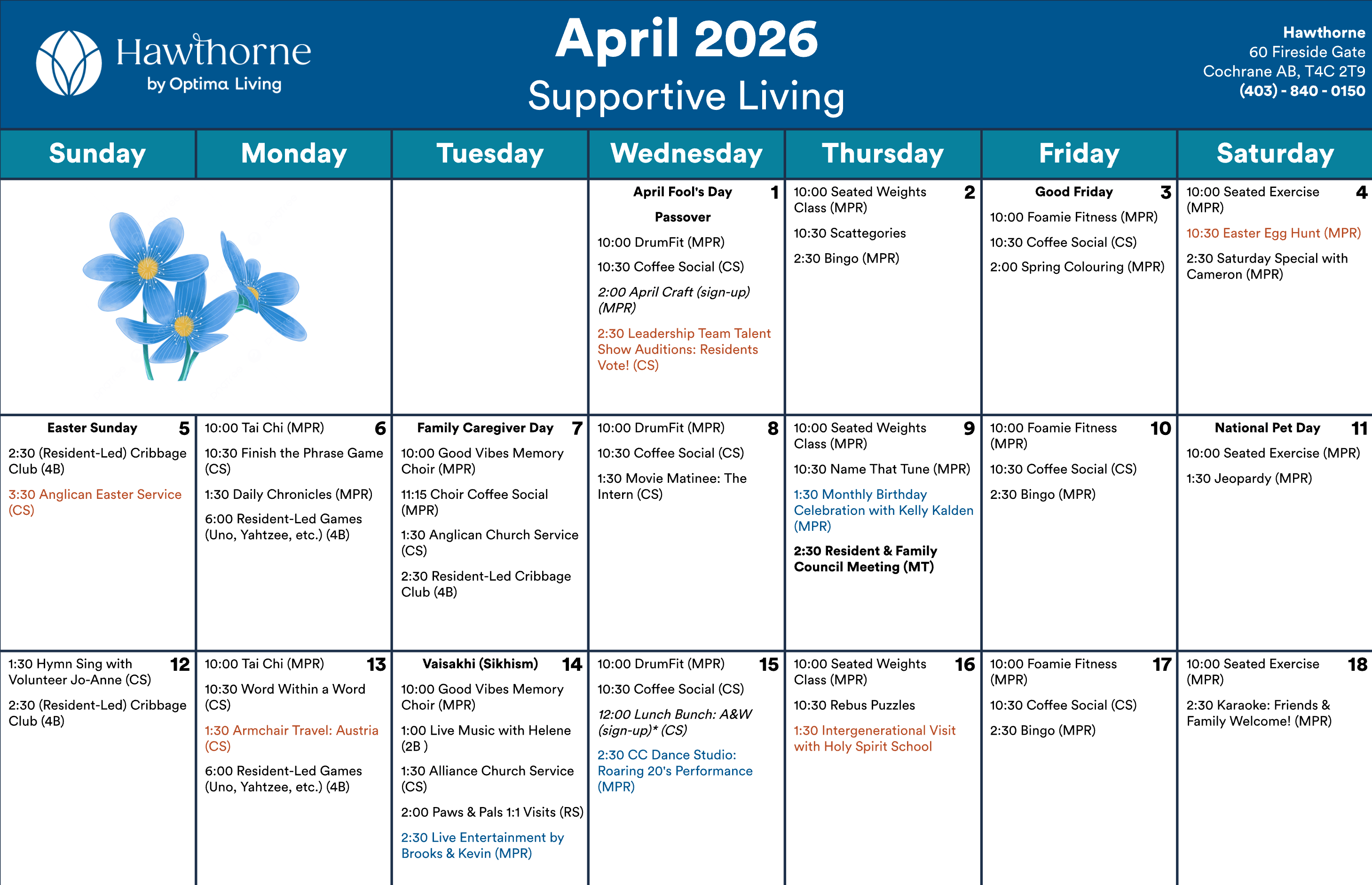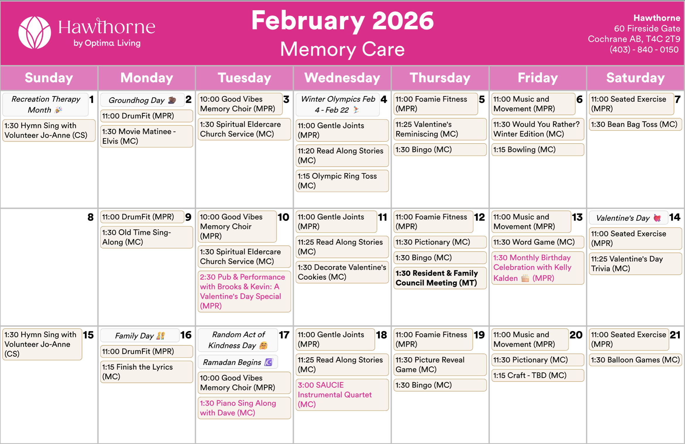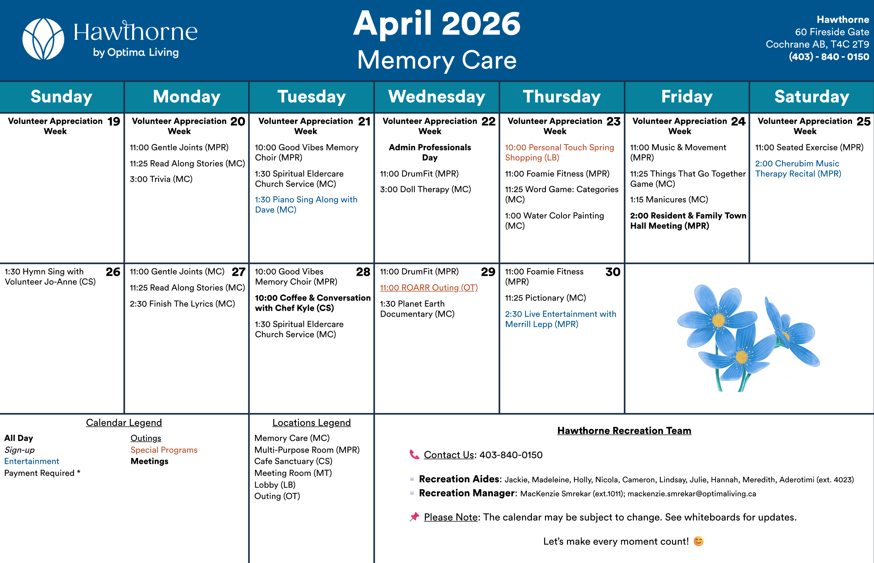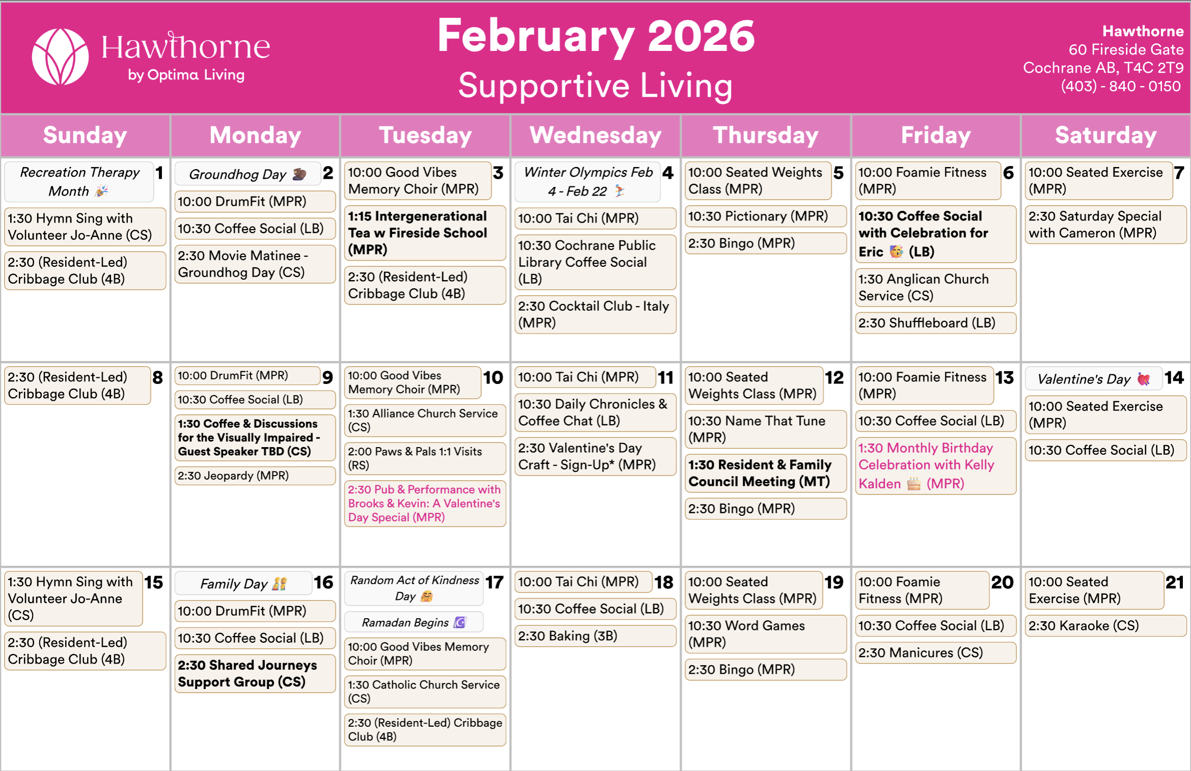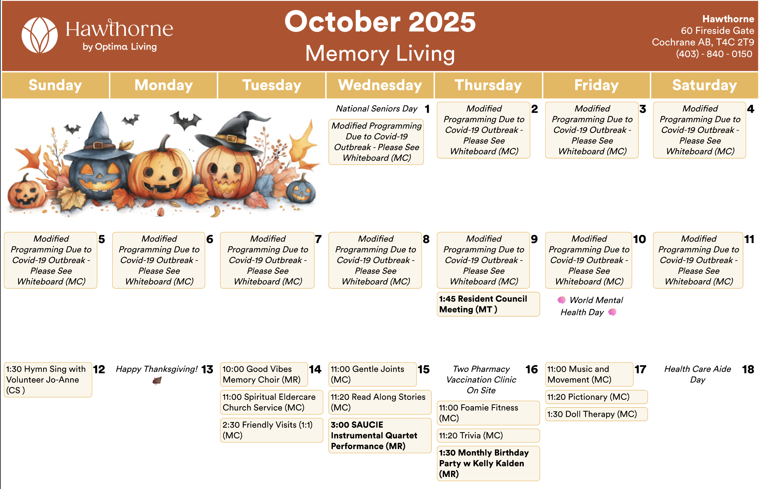 Any updates or changes will be posted on whiteboards in the residence! Calendar is subject to change.