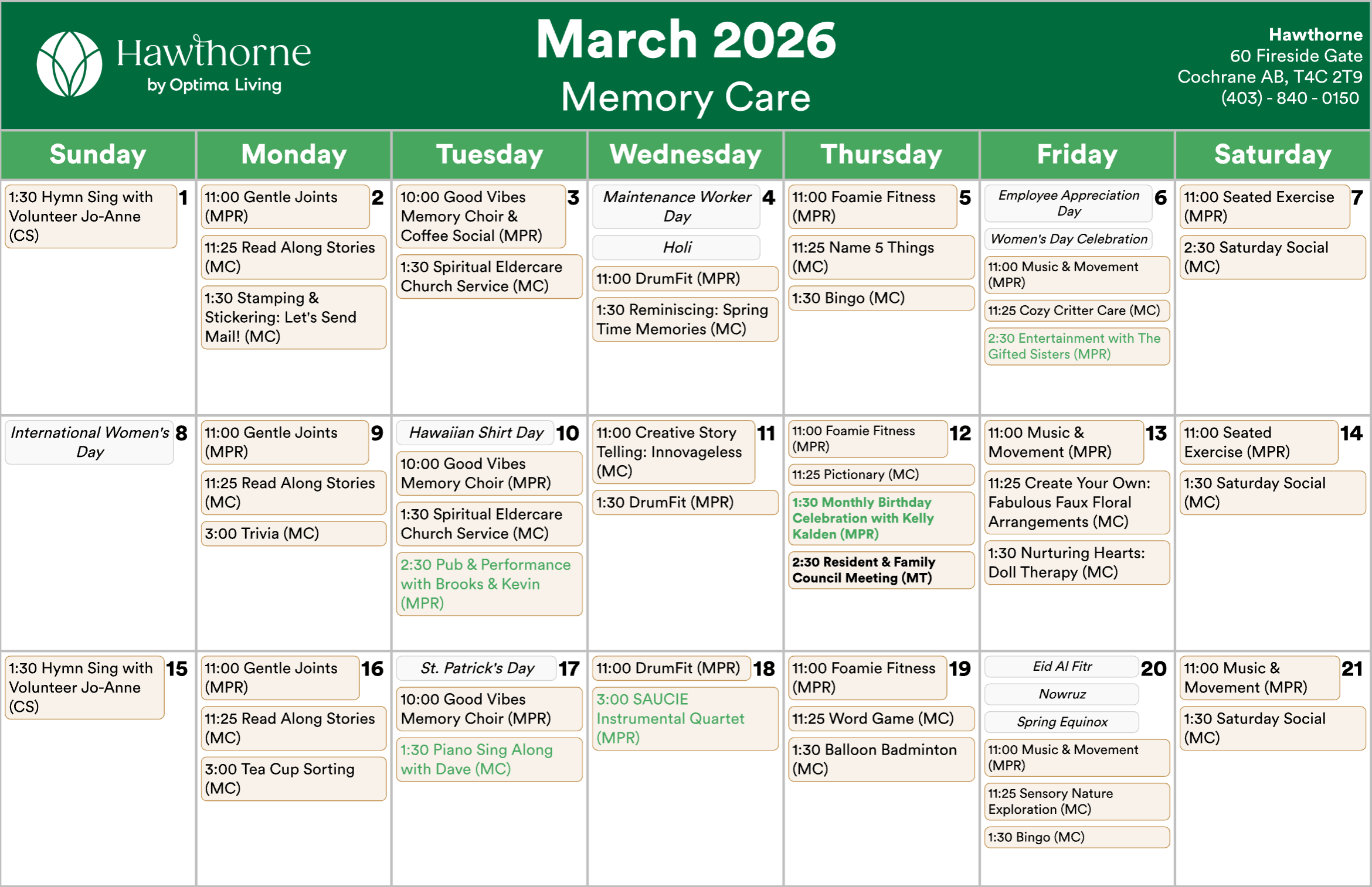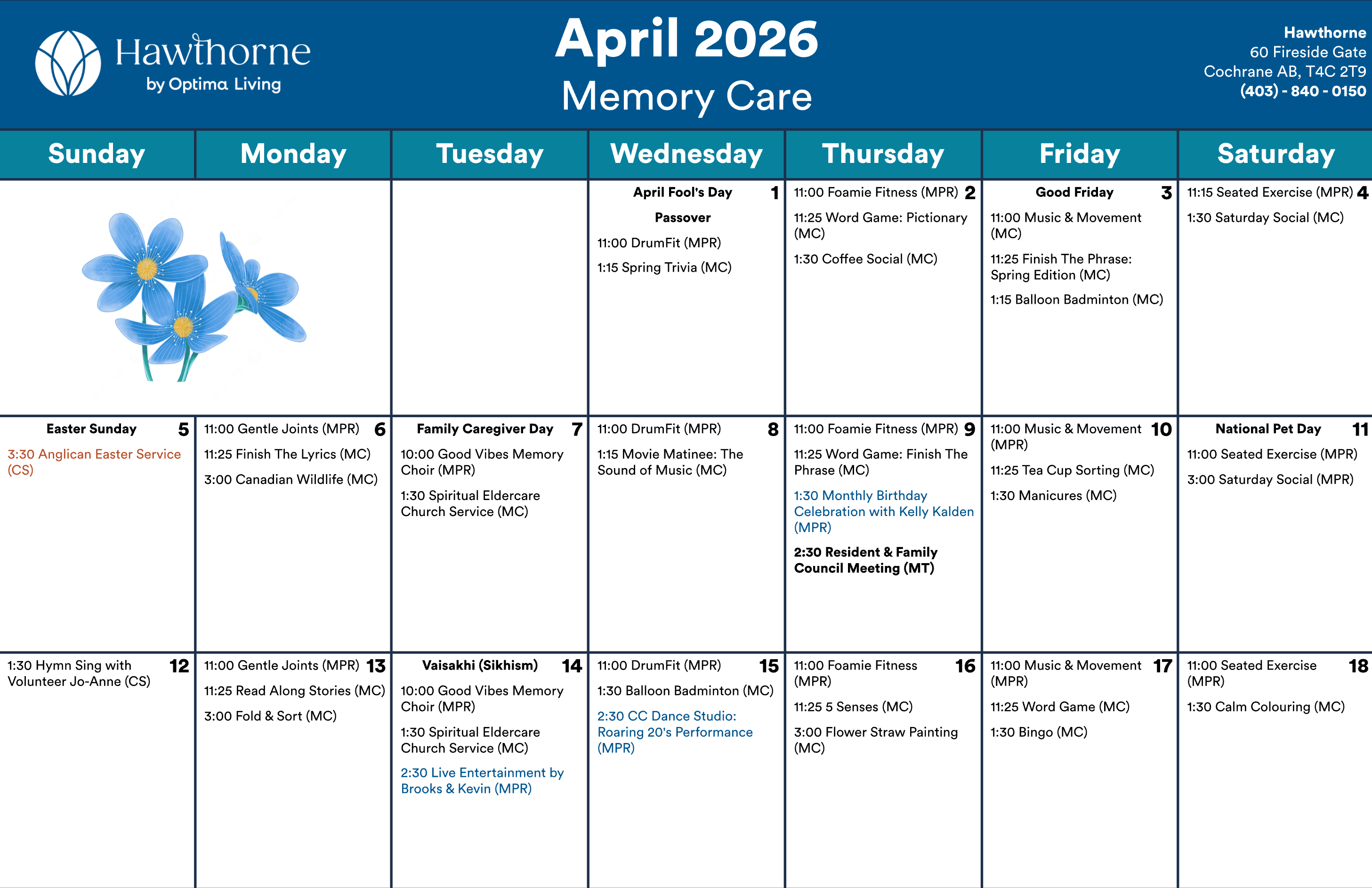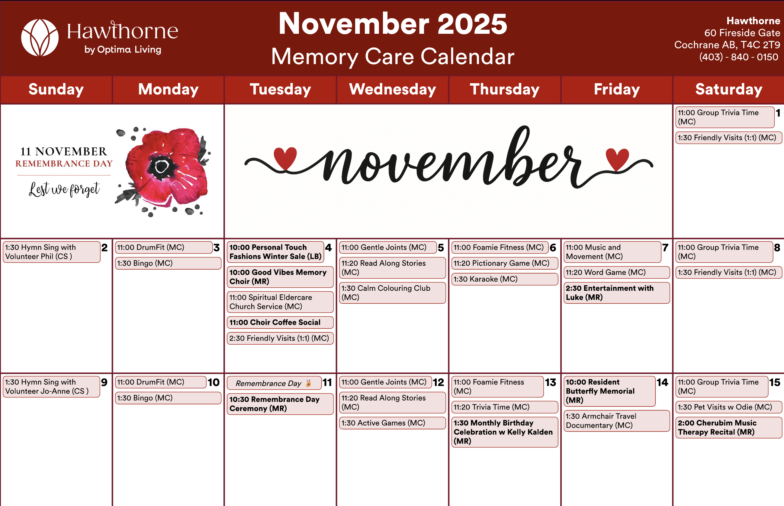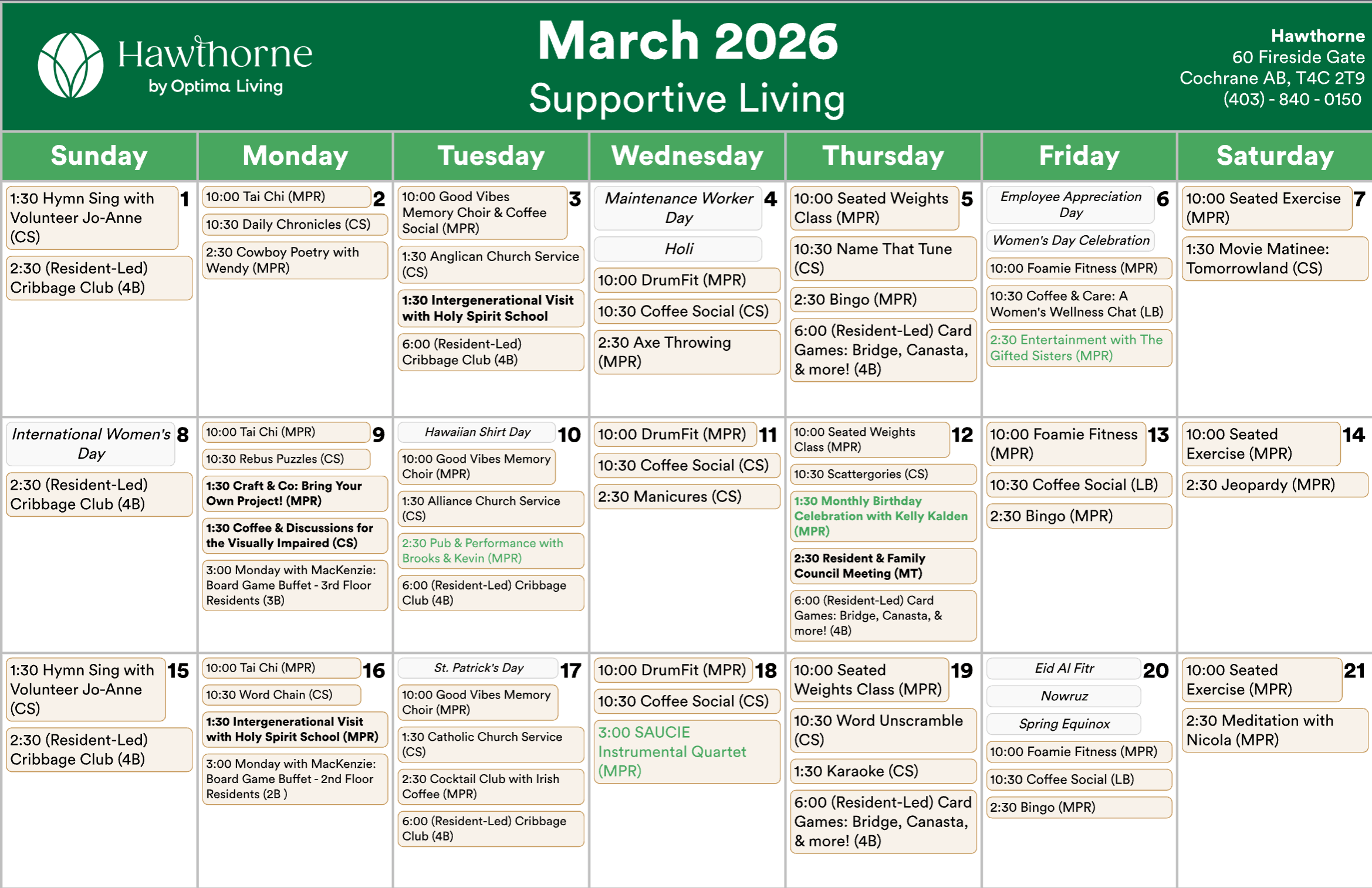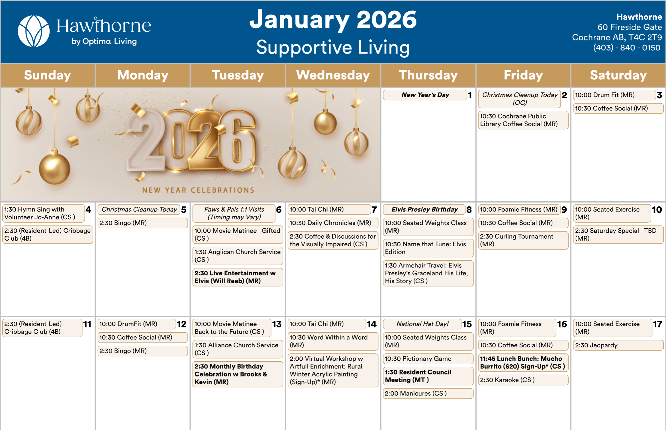 Any updates or changes will be posted on whiteboards in the residence! Calendar is subject to change.